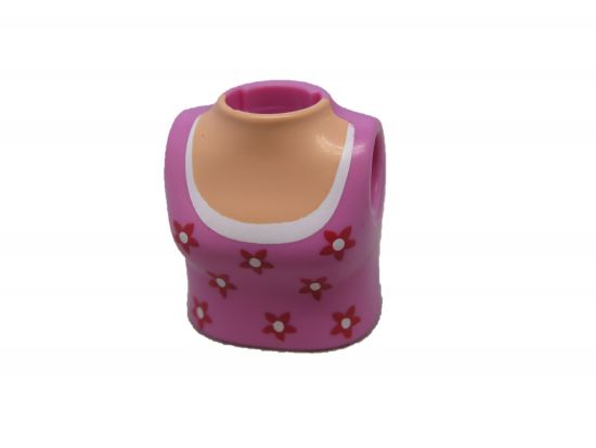 Oberkörper Frau mit rundem Ausschnitt rosa mit Blümchenaufdruck