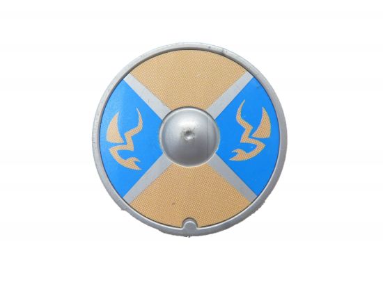 Schild rund mit Aufkleber Kreuz und Drachen blau-beige-silber